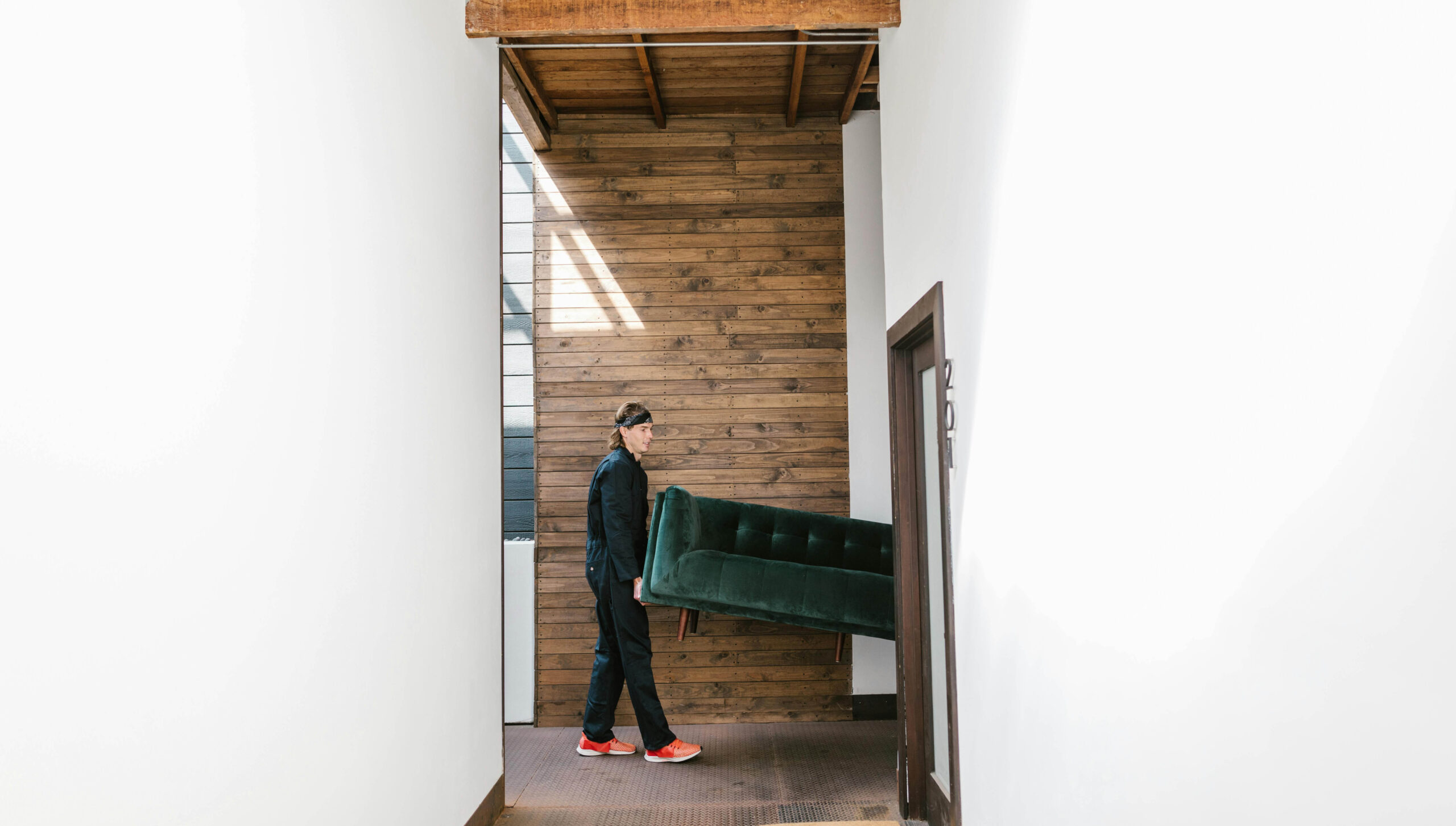 Measure large furniture. High-rise apartments have standard doorways (32–34 inches). King-size mattresses fit through most — but box springs sometimes don’t. Split box springs are available from most mattress retailers for exactly this reason.
